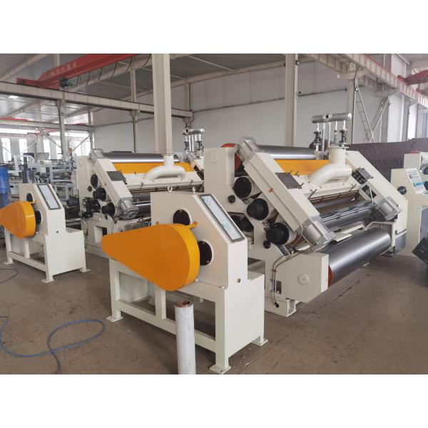 | SF-280 vacuum single face machine | Make craft paper to 2 ply Size :1400mm Real alloy steel roller Adjust glue by electrical Chain transport Electrical heating Inverter motor Schneider Electric HRB bearing |